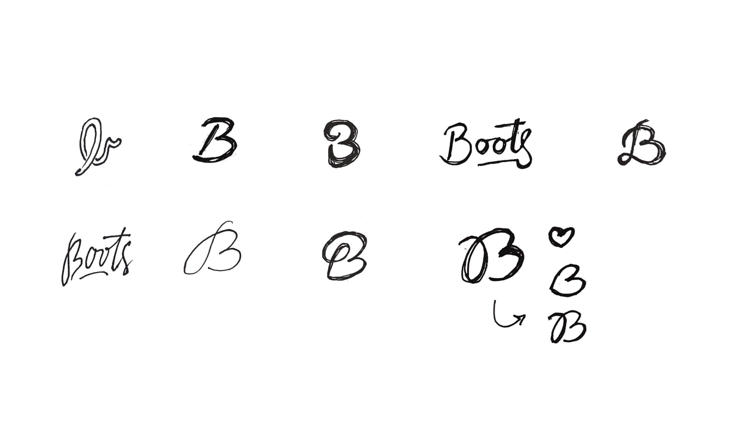 To prepare for this rebrand, I performed a company history audit and competitor audit. The goal of these audits was to learn what was already in the market, and how Boots positioned themselves in that market. Additional research methods for this rebrand were creating personas, refining Boot's mission statement, creating mood boards, and sketching logo possibilities that felt reminiscent of the previous mark, but still new and fresh.